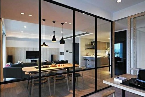 玻璃搭上鐵件為經典組合,細邊鋁框設計讓拉門輕盈不搶眼,增添空間現代感與通透感,非常適合台南居家室內使用。